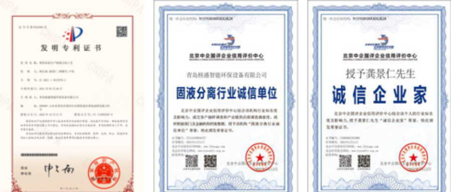 過(guò)去的一年核盛榮獲發(fā)明專利1項(xiàng)、實(shí)用新型專利7項(xiàng);還獲得了AAA級(jí)信用企業(yè)、誠(chéng)信供應(yīng)商、誠(chéng)信經(jīng)營(yíng)示范單位、固液分離行業(yè)誠(chéng)信單位、重合同守信用企業(yè)、質(zhì)量服務(wù)誠(chéng)信單位、公司董事長(zhǎng)龔景仁獲得誠(chéng)信企業(yè)家稱號(hào)。2022年公司成立了青島市固液分離環(huán)保專用設(shè)備制造技術(shù)創(chuàng)新中心,公司一直專注于固液分離設(shè)備研發(fā)、技術(shù)服務(wù),秉承“創(chuàng)新進(jìn)取,追求優(yōu)異”的企業(yè)精神。