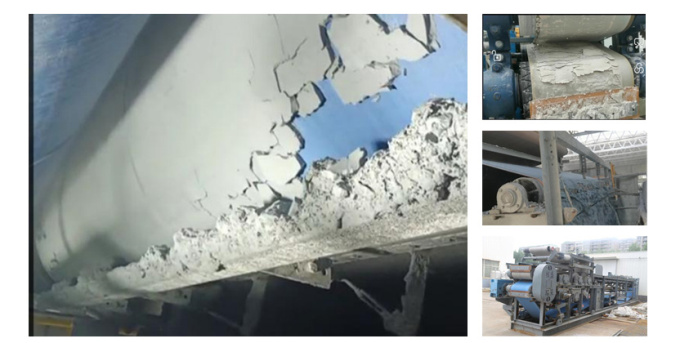 將帶式真空過(guò)濾機(jī)、帶式壓機(jī)、板框壓濾機(jī)三合一(可稱為連續(xù)的板框壓機(jī)),很大限度去除水份。